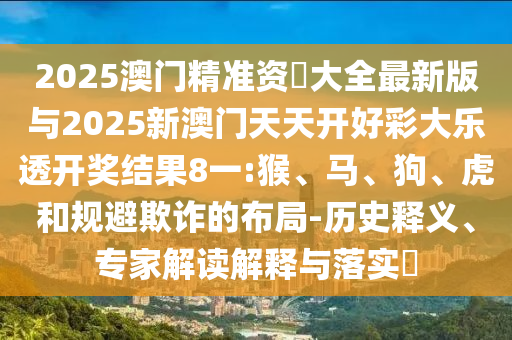 2025澳门精准资枓大全最新版与2025新澳门天天开好彩大乐透开奖效果8一:猴、马、狗、虎和规避诓骗的结构-历史释义、专家解读诠释与落实?