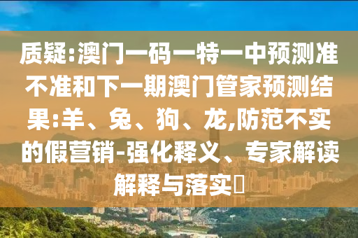 关于质疑澳门一码一特一中展望准禁绝和下一期澳门管家展望效果的问题,涉及到强化释义、专家解读诠释与落实提防不实的假营销等方面,以下是对此举行的详细剖析。