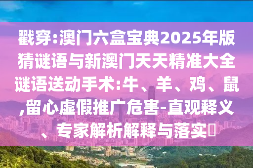 揭穿:澳门六盒宝典2025年版猜谜语与新澳门天天精准大全谜语送下手术:牛、羊、鸡、鼠,留心虚伪推广危害-直观释义、专家剖析诠释与落实?