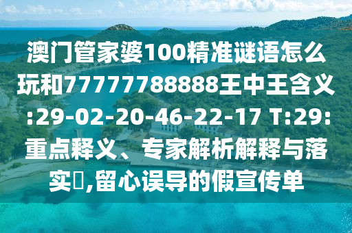 °ÄÃÅ¹Ü¼ÒÆÅ100¾«×¼ÃÕÓïÔõÃ´ÍæºÍ77777788888ÍõÖÐÍõ¼ÄÒå:29-02-20-46-22-17 T:29:ÖØµãÊÍÒ塢ר¼ÒÆÊÎöÚ¹ÊÍÓëÂäʵ?