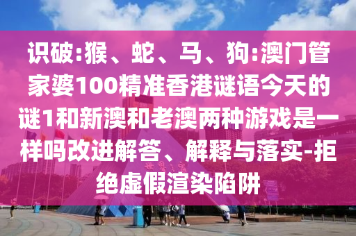 猴、蛇、马、狗:澳门管家婆100精准香港谜语今天的谜1和新澳和老澳两种游戏是一样吗:刷新解答、诠释与落实