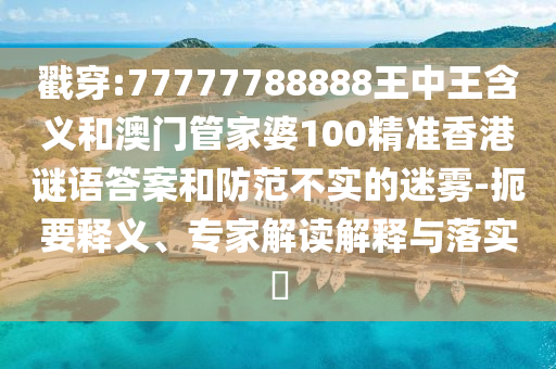 ÔÚÏÖʵÉúÑÄÖУ¬ÎÒÃÇ¿ÉÄÜ»áÓöµ½Ò»Ð©¿´ËÆÉñÃØ»òÁîÈËÒÉÐĵÄÊÂÎºÃ±ÈÄ³Ð©ÌØ¶¨µÄÊý×Ö×éºÏ»ò¿ÚºÅ£¬½Ò´©¡±Ò»´Ê£¬Ëüͨ³£Òâζ×ÅÕ¹ÏÖÕæÏ࣬´©Í¸±íÏó£¬ÈÃÎÒÃÇ¿´ÇåÊÂÎïµÄʵÖÊ£¬¶øÊý×Ö×éºÏ¡°77777788888ÍõÖÐÍõ¡±£¬ÔÚûÓÐÏêϸÉÏÏÂÎĵÄÇéÐÎÏ£¬Æä¼ÄÒå¿ÉÄÜÒòµØÇø¡¢ÎÄ»¯¡¢Ð¡ÎÒ˽¼ÒÃ÷È·µÈÒòËØ±¬·¢²î±ðµÄ½â¶Á£¬ÔÚijЩÎÄ»¯Åä¾°Ï£¬ÕâÀàÊý×Ö×éºÏ¿ÉÄܽö½öÊÇijÖÖ·ûºÅ»ò±êʶ£¬ÓÃÒÔÎüÒý×¢ÖØ»ò±¬·¢Ä³ÖÖÌØ¶¨µÄÐÄÀíЧӦ ¡£