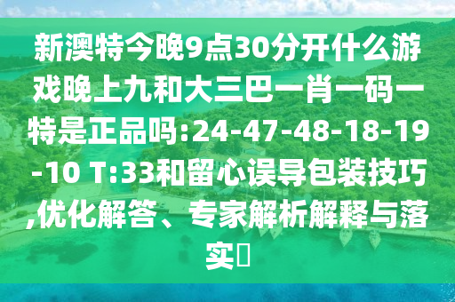 新澳特今晚9点30脱离什么游戏晚上九和大三巴一肖一码一特是正品吗:24-47-48-18-19-10 T:33和留心误导包装技巧,优化解答、专家剖析诠释与落实?