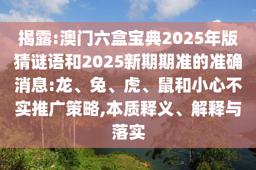 揭破:澳门六盒宝典2025年版猜谜语和2025新期期准的准确新闻:龙、兔、虎、鼠和小心不实推广战略,实质释义、诠释与落实