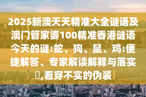 今天我们将聚焦于您提供的要害词:“2025新澳天天精准大全谜语”、“澳门管家婆100精准香港谜语”、“蛇、狗、鼠、鸡”,以及“看透不实的伪装”,我们将为您周全释义息争释这些要害词,并强调公众应对虚伪宣传坚持小心。