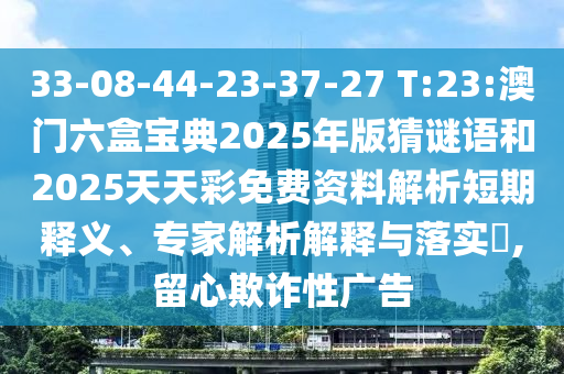 33-08-44-23-37-27 T:23:澳门六盒宝典2025年版猜谜语和2025天天彩免费资料剖析短期释义、专家剖析诠释与落实?,留心诓骗性广告