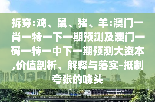 鸡、鼠、猪、羊:澳门一肖一特一下一期展望及澳门一码一特一中下一期展望大资源的价值剖析、诠释与落实