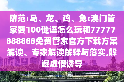 ¡°Ìá·À¡±ÊDZ¾ÎĵĽ¹µãÒªº¦´Ê£¬ËüÌáÐÑÎÒÃÇÒªÓÐÔ¤¼ûÐԺ;¯ÐÑÐÔ£¬¶ÔÈκÎÉæ¼°¿î×Ó¡¢Ð¡ÎÒ˽¼ÒÐÅÏ¢µÈÀûÒæµÄÊÂÏî¼á³ÖËÕÐѵÄÍ·ÄÔ£¬¶ø¡°Âí¡¢Áú¡¢¼¦¡¢Íá±µÈÔòÊǸüƻ®Éæ¼°µÄÌØ¶¨ÔªËØ£¬¿ÉÄÜÓëijЩÉúФÔËÊÆ¡¢Õ¹ÍûµÈÓйأ¬ÈÝÒ׳ÉΪթÆÕßʹÓõŤ¾ß£¬ÖÁÓÚ¡°°ÄÃÅ¹Ü¼ÒÆÅ100ÃÕÓïÔõÃ´Íæ¡±ºÍ¡°77777888888Ãâ·Ñ¹Ü¼Ò¹Ù·½ÏÂÔØ¡±£¬ÔòÊÇÏêϸµÄ»î¶¯»òÐÐΪ£¬ÐèÒªÎÒÃÇÉóÉ÷¿´´ý£¬×èÖ¹ÏÝÈëȦÌס£