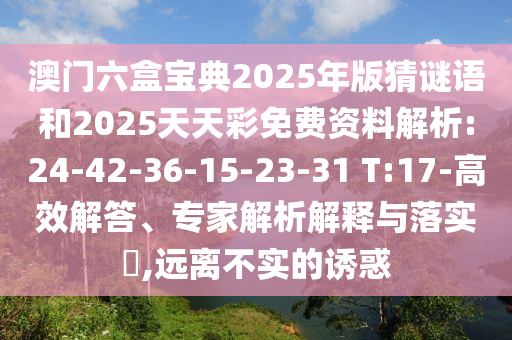 °ÄÃÅÁùºÐ±¦µä2025Äê°æ²ÂÃÕÓïºÍ2025ÌìÌì²ÊÃâ·Ñ×ÊÁÏÆÊÎö:24-42-36-15-23-31 T:17µÄ¸ßЧ½â´ð¡¢×¨¼ÒÆÊÎöÚ¹ÊÍÓëÂäʵ?