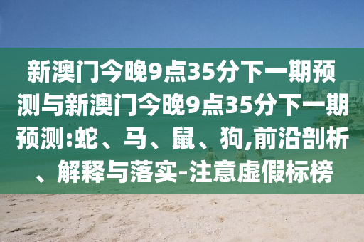 新澳门今晚9点35分下一期展望与新澳门今晚9点35分展望:蛇、马、鼠、狗——注重虚伪标榜”的前沿剖析、诠释与落实