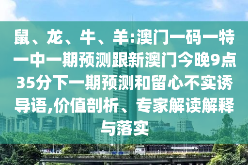关于鼠、龙、牛、羊在澳门一码一特一中一期展望和新澳门今晚9点35分下一期展望的价值剖析、专家解读诠释与落实,以及关于虚伪宣传和不实诱导语的小心
