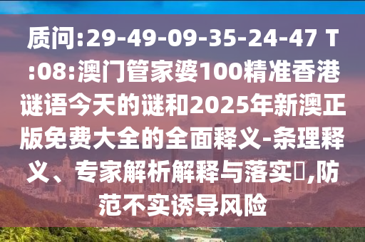 诘责:29-49-09-35-24-47 T:08:澳门管家婆100精准香港谜语今天的谜和2025年新澳正版免费大全的周全释义-条理释义、专家剖析诠释与落实?,提防不实诱导危害
