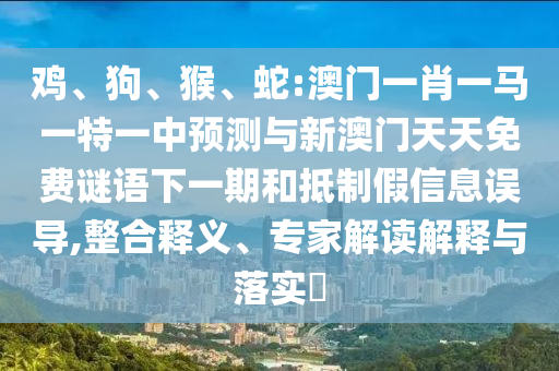 关于要害词“鸡、狗、猴、蛇”,以及“澳门一肖一马一特一中展望”与新澳门天天免费谜语下一期的整合释义、专家解读诠释与落实,抵制假信息误导的内容如下: