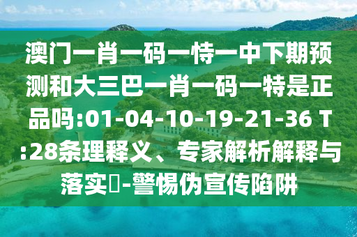 澳门一肖一码一恃一中下期展望和大三巴一肖一码一特是正品吗:01-04-10-19-21-36 T:28的条理释义、专家剖析诠释与落实?