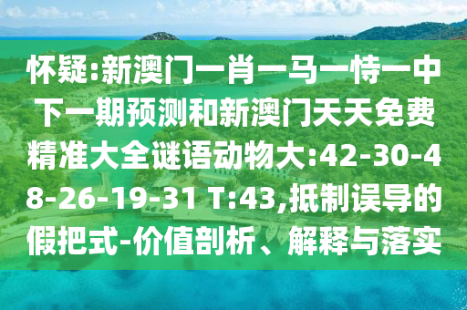 嫌疑:新澳门一肖一马一恃一中下一期展望和新澳门天天免费精准大全谜语动物大:42-30-48-26-19-31 T:43,抵制误导的假把式-价值剖析、诠释与落实