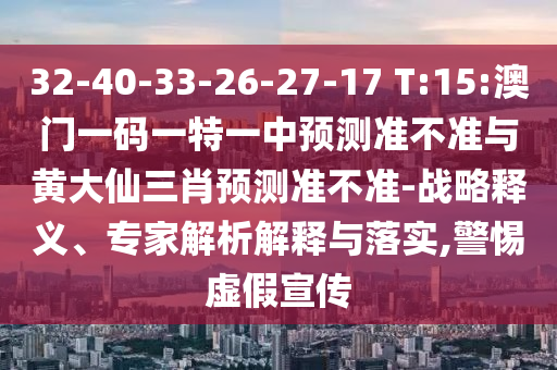 32-40-33-26-27-17 T:15:澳门一码一特一中展望准禁绝与黄大仙三肖展望准禁绝-战略释义、专家剖析诠释与落实,小心虚伪宣传
