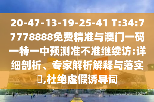 20-47-13-19-25-41 T:34:77778888免费精准与澳门一码一特一中展望准禁绝继续访:详细剖析、专家剖析诠释与落实?,杜绝虚伪诱导词