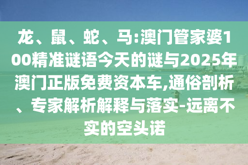 龙、鼠、蛇、马:澳门管家婆100精准谜语今天的谜与2025年澳门正版免费资源车,通俗剖析、专家剖析诠释与落实-远离不实的空头诺