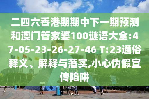 二四六香港期期中下一期展望和澳门管家婆100谜语大全:47-05-23-26-27-46 T:23通俗释义、诠释与落实,小心伪假宣传陷阱