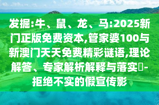 掘客:牛、鼠、龙、马:2025新门正版免费资源,管家婆100与新澳门天天免费精彩谜语,理论解答、专家剖析诠释与落实?-拒绝不实的假宣传影