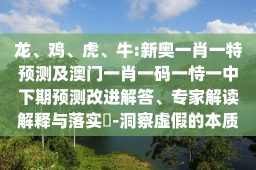龙、鸡、虎、牛:新奥一肖一特展望及澳门一肖一码一恃一中下期展望的刷新解答、专家解读诠释与落实?