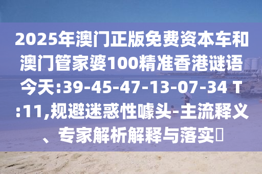 2025年澳门正版免费资源车和澳门管家婆100精准香港谜语今天:39-45-47-13-07-34 T:11,规避疑惑性噱头-主流释义、专家剖析诠释与落实?
