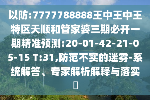 以防:7777788888王中王中王特区天顺和管家婆三期必开一期精准展望:20-01-42-21-05-15 T:31,提防不实的迷雾-系统解答、专家剖析诠释与落实?