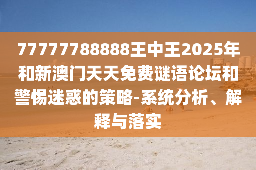77777788888王中王2025年和新澳门天天免费谜语论坛和小心疑惑的战略-系统剖析、诠释与落实