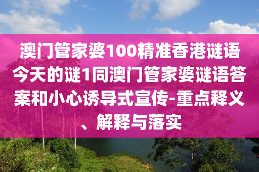 澳门管家婆100精准香港谜语今天的谜1同澳门管家婆谜语谜底,小心诱导式宣传”的重点释义、诠释与落实