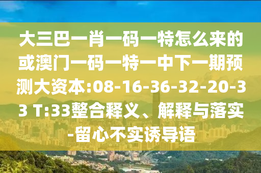 大三巴一肖一码一特怎么来的或澳门一码一特一中下一期展望大资源:08-16-36-32-20-33 T:33的整合释义、诠释与落实