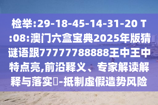 29-18-45-14-31-20 T:08:澳门六盒宝典2025年版猜谜语跟77777788888王中王中特点亮:前沿释义、专家解读诠释与落实?