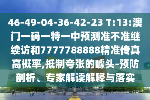 46-49-04-36-42-23 T:13:澳门一码一特一中展望准禁绝继续访和7777788888精准传真高概率的预防剖析、专家解读诠释与落实