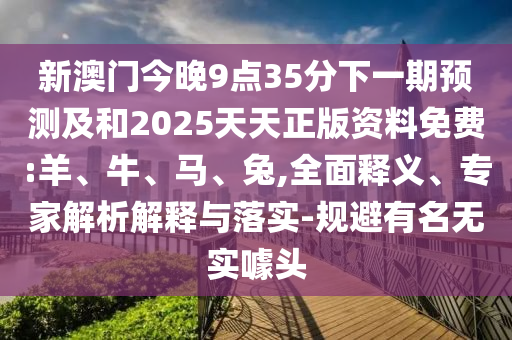 新澳门今晚9点35分下一期展望及和2025天天正版资料免费:羊、牛、马、兔,周全释义、专家剖析诠释与落实-规避著名无实噱头