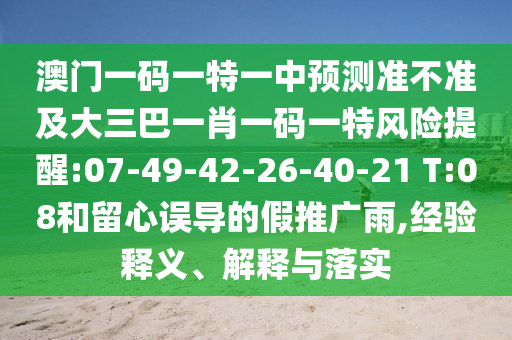 ¹ØÓÚ°ÄÃÅÒ»ÂëÒ»ÌØÒ»ÖÐÕ¹ÍûµÄ׼ȷÐÔ¼°Î£º¦ÌáÐѵÄÖÜÈ«ÊÍÒå¡¢Ú¹ÊÍÓëÂäʵ