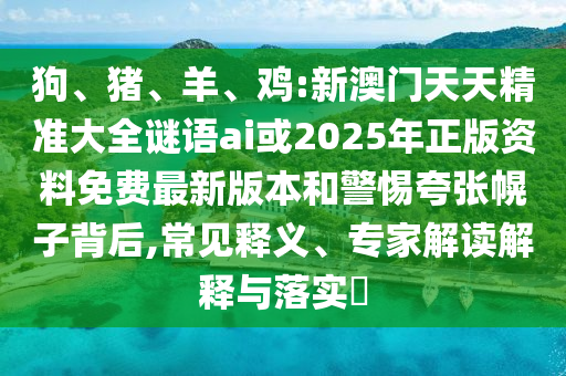 关于曝光、狗、猪、羊、鸡、新澳门天天精准大全谜语ai或2025年正版资料免费最新版本,以及小心夸张宣传背后的真相的相关释义、专家解读与落实的内容如下: