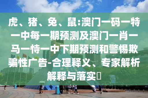 关于要害词“虎、猪、兔、鼠:澳门一码一特一中每一期展望及澳门一肖一马一恃一中下期展望”的周全释义、诠释与落实,以及小心虚伪宣传的文章
